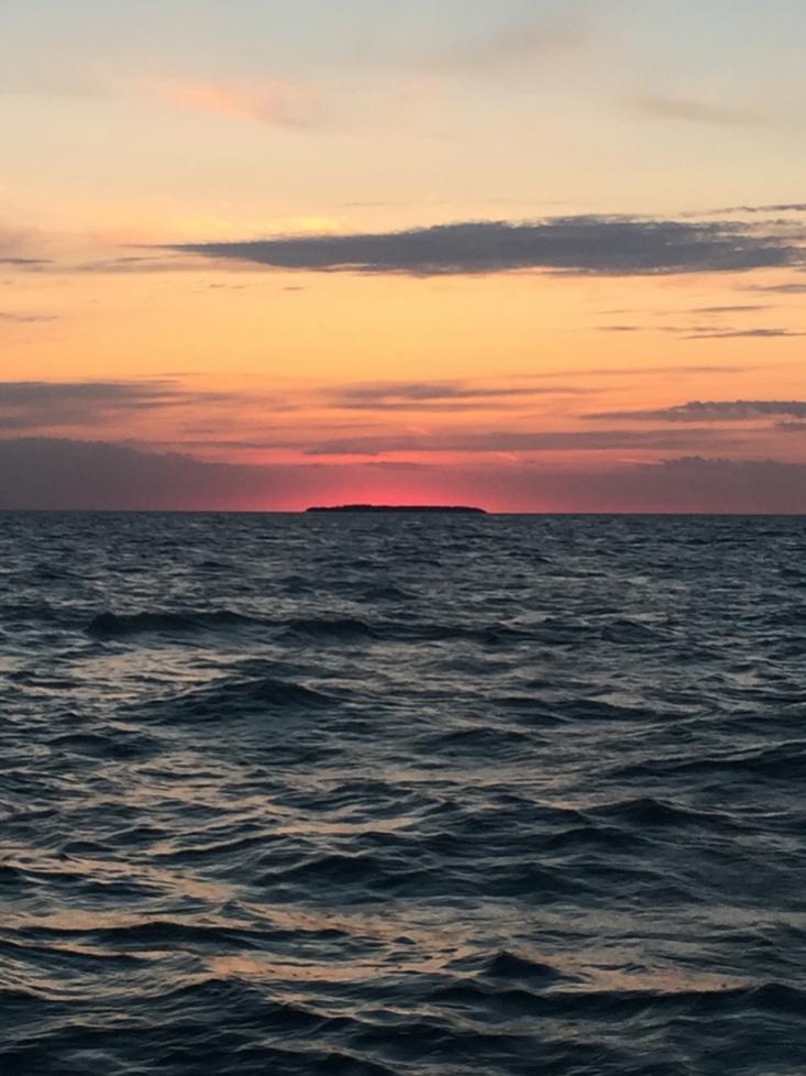 The sky starts getting light enough to see by 5:15 now...and, by 5:30AM it's almost light enough to not need the running lights lit up on the boat.